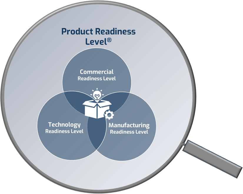 Our Product Readiness Level (PRL®) framework integrates Commercial Readiness Level (CRL), Technology Readiness Level (TRL), and Manufacturing Readiness Level‘s (MRL) to give you a clear roadmap to a commercially viable, manufacturable product.